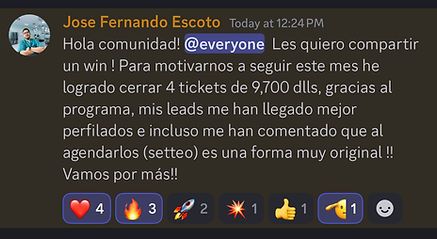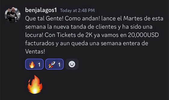 ”¡Qué tal gente! ¿Cómo andan? Lancé el martes de esta semana la nueva tanda de clientes y ha sido una locura. ¡Con tickets de 2K ya vamos en 20.000 USD facturados y aún queda una semana entera de ventas!”